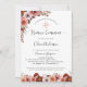 Blush pink floral watercolor girl First Communion invitation in Spanish, with exquisite floral arrangement on top left corner and field of flowers on card's bottom section. Same invitation also available in English. Flowers in gorgeous trendy blush pink, dusty rose, ivory, peach and burgundy tones. Card's back in blush pink with flower detail on the bottom. Invitation with section for "Ceremony" and "Reception" details. Coordinating products available. Part of our "Heaven in Rose" wedding and events collection.
