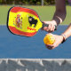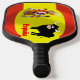 Pickleball paddle flag of Spain with black bull that you can customise with any text of your choice. Should you require any help with customising then contact us through the link on this page. Spanish flag bull pickleball bat