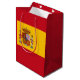 Design with variant flag of Kingdom of Spain (la Rojigualda), golden yellow and red flag with coat of arms