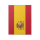 This design features the flag of Spain (known in Spanish as "España"), officially known as the Kingdom of Spain (in Spanish, "Reino de España"), which is a country in Southwestern Europe with some pockets of territory across the Strait of Gibraltar and the Atlantic Ocean. Its continental European territory is situated on the Iberian Peninsula. Moreover, the African enclaves of Ceuta, Melilla and Peñón de Vélez de la Gomera make Spain the only European country to have a physical border with an African country, in this case Morocco. The country's mainland is bordered to the south and east by the Mediterranean Sea except for a small land boundary with Gibraltar; to the north and northeast by France, Andorra, and the Bay of Biscay; and to the west and northwest by Portugal and the Atlantic Ocean respectively. The capital and largest city of Spain is Madrid. Other major cities and towns in Spain include Barcelona, Valencia, Seville (Sevilla), Zaragoza, Málaga, Murcia, Palma, Las Palmas, Bilbao, Alicante, Córdoba, Valladolid, Vigo, Gijón (Xixón), L'Hospitalet de Llobregat, Vitoria-Gasteiz, A Coruña, Elche and Granada.