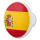 This design features the flag of Spain (known in Spanish as "España"), officially known as the Kingdom of Spain (in Spanish, "Reino de España"), which is a country in Southwestern Europe with some pockets of territory across the Strait of Gibraltar and the Atlantic Ocean. Its continental European territory is situated on the Iberian Peninsula. Moreover, the African enclaves of Ceuta, Melilla and Peñón de Vélez de la Gomera make Spain the only European country to have a physical border with an African country, in this case Morocco. The country's mainland is bordered to the south and east by the Mediterranean Sea except for a small land boundary with Gibraltar; to the north and northeast by France, Andorra, and the Bay of Biscay; and to the west and northwest by Portugal and the Atlantic Ocean respectively. The capital and largest city of Spain is Madrid. Other major cities and towns in Spain include Barcelona, Valencia, Seville (Sevilla), Zaragoza, Málaga, Murcia, Palma, Las Palmas, Bilbao, Alicante, Córdoba, Valladolid, Vigo, Gijón (Xixón), L'Hospitalet de Llobregat, Vitoria-Gasteiz, A Coruña, Elche and Granada.