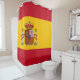 This design features the flag of Spain (known in Spanish as "España"), officially known as the Kingdom of Spain (in Spanish, "Reino de España"), which is a country in Southwestern Europe with some pockets of territory across the Strait of Gibraltar and the Atlantic Ocean. Its continental European territory is situated on the Iberian Peninsula. Moreover, the African enclaves of Ceuta, Melilla and Peñón de Vélez de la Gomera make Spain the only European country to have a physical border with an African country, in this case Morocco. The country's mainland is bordered to the south and east by the Mediterranean Sea except for a small land boundary with Gibraltar; to the north and northeast by France, Andorra, and the Bay of Biscay; and to the west and northwest by Portugal and the Atlantic Ocean respectively. The capital and largest city of Spain is Madrid. Other major cities and towns in Spain include Barcelona, Valencia, Seville (Sevilla), Zaragoza, Málaga, Murcia, Palma, Las Palmas, Bilbao, Alicante, Córdoba, Valladolid, Vigo, Gijón (Xixón), L'Hospitalet de Llobregat, Vitoria-Gasteiz, A Coruña, Elche and Granada.