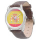 The watch looks really great! Very sharp and well done. The leather band is really nice, though for a man's watch I think it should be longer. Unfortunately, it isn't big enough for my husband's wrist but I will get a replacement because he is very excited to wear it!