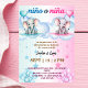 Celebrate your little one's big reveal with this adorable Spanish-themed gender reveal invitation. Featuring a charming design of playful elephants, this invitation is perfect for announcing whether you're expecting a "Niño" (boy) or "Niña" (girl). The soft pastel colours and cute illustrations of elephants bring a warm, joyful tone to your special occasion.