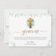 Thank your guests and Godparents with style! Card in Spanish. Also available in English. Exquisite Religious Event Thank You card with gorgeous golden cross surrounded by watercolor greenery in pale green, mint, and pale blue turquoise tones. Golden "Thank You" phrase in modern hand written Calligraphy. Delicate blue turquoise and green watercolor stains on the bottom and dainty decorative foliage on the top. Unisex design ideal for both boys and girls. Great for Baptism, First Communion and Confirmations. Back in turquoise blue mint tone. Coordinating invitations and event products available. Part of our "Unisex Elegant Greenery Religious Events Collection"