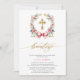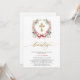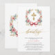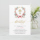 Invitación de bautizo en rosa y dorado. Modern, Elegant Gold and Pink Spanish Bautizo Invitation . This modern and elegant design features a beautiful gold and pink floral wreath adorned with a delicate bow and a gold cross inside. The word "bautizo" is elegantly scripted in gold handwritten lettering, adding a touch of sophistication. The celebration details are highlighted in trendy block capital lettering on a crisp white background. Perfect for announcing your child's baptism with style and grace, this invitation beautifully combines contemporary elements with timeless charm.