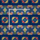 Bring the vibrant warmth of the coast to your next DIY project with this stunning Spanish Mediterranean tile pattern. This design features a classic intricate motif reminiscent of traditional Mexican Talavera or Portuguese Azulejos tiles. The pattern showcases a deep slate blue background accented by vibrant stylised florals and geometric scrollwork in rich tomato red, mustard yellow, and sage green.
