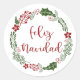 Spanish Merry Christmas Wreath, Feliz Navidad Classic Round Sticker