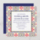 This Mediterranean Inspired Wedding invitation features a flamboyant and stylish traditional Spanish tile borders in yellow and navy blue.