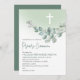 Celebrate your child’s First Holy Communion with this Catholic invitation, featuring green leaves and a white cross. Perfect for a Cute First Communion.