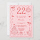 Spanish Retro Quirky Red Pink 22nd Birthday Invitation