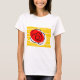Whimsical design drawn in a retro style featuring a red rose souvenir from a Spanish holiday on a striped yellow background. A customisable design in black, white, red and yellow for you to personalise with your own text, images and ideas. An original digital art image.