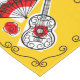 Whimsical design drawn in a retro style featuring souvenirs from a Spanish holiday; a wrought iron guitar, lacy fan and red rose. A customisable design in black, white, red and golden yellow for you to personalise with your own text, images and ideas. An original digital art image.