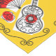 Whimsical design drawn in a retro style featuring souvenirs from a Spanish holiday; a wrought iron guitar, lacy fan and red rose. A customisable design in black, white, red and golden yellow for you to personalise with your own text, images and ideas. An original digital art image.