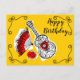 Whimsical design drawn in a retro style featuring souvenirs from a Spanish holiday; a wrought iron guitar, lacy fan and red rose. A customisable design in black, white, red and golden yellow for you to personalise with your own text, images and ideas. An original digital art image.