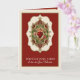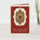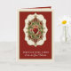Featuring a beautiful custom designed traditional Catholic vintage image of the Sacred Heart of Jesus with a vintage frame. Inside is a beautiful vintage painting of the Blessed Mother giving the Holy Rosary to St. Valentine. The text is in Spanish, but may be modified.