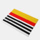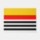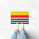 Doormat with a striped design in yellow, red, black and white. Created to co-ordinate with the Spanish Souvenirs range of home accessories and party supplies.