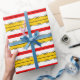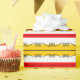 Decorative retro design with a Spanish flavour featuring stripes in gold, red and white and black swirl embellishment. A customisable design in black, white, red and golden yellow for you to personalise with your own text, images and ideas. An original digital art image created by QuirkyChic.