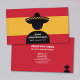 A red and yellow business card for Spanish language teacher or tutor with a silhouette of a person with a sombrero and full contact information on the back.