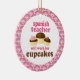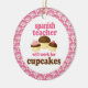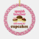 Spanish Teacher ornament has funny will work for cupcakes quote and a trio of cute chocolate cupcakes occupation design. It makes a great Christmas gift idea or retirement gift for a woman or female Spanish Teacher.