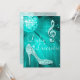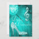 Invitaciones personalizadas y elegantes para fiestas de cumpleaños Sweet 16 para chicas. Hermosas invitaciones de doble cara Sweet Sixteen en tonos teal y blanco para adolescentes, con una divertida bola de discoteca retro, imágenes impresas glamorosas con purpurina de strass, lentejuelas, joyas que brillan, zapatos de tacón stiletto, y notas musicales brillantes/símbolos musicales con destellos sobre un fondo vibrante de luces turquesa y destellos. Invitaciones chic, elegantes, lindas, femeninas y modernas, con colores de moda y actuales. Estas invitaciones geniales, estilizadas, sofisticadas y bonitas están decoradas/impresas en ambos lados. Invitaciones perfectas para un evento de cena y baile. NOTA: Todas las invitaciones en Zazzle tienen imágenes impresas planas. Si necesita ayuda para personalizar su producto, por favor contácteme a través de mi tienda y estaré encantado de ayudarle.