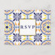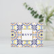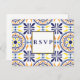 Spanish tile yellow navy wedding RSVP MEAL CHOICE Invitation Postcard