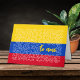 Valentine's Day greeting card for your Amor features Spanish words TE AMO--I Love you. Field of stars lays on the colours of the flag of Colombia, South America. Red blue and yellow tricolor, Message in Spanish with English translation on the inside.