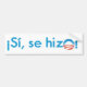 Show your support for the Obama presidency with this bumper sticker. Translation: "yes, we did"!