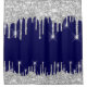 Spark Drips Glitter Effect Blue Navy Silver Grey Shower Curtain