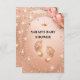 This dazzling design features sparkling peach gold glitter accents on a soft peach background, beautifully showcasing tiny glitter baby feet, roses and tiarra. Perfect for welcoming a little princess, this elegant invitation adds a touch of glamour to your special event. Celebrate in style and make your baby shower unforgettable with this luxurious, eye-catching invite!
