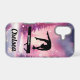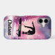 Embrace the spirit of winter gymnastics with this enchanting phone case. The striking silhouette of a gymnast in action on the balance beam is beautifully rendered against a soft, glowing purple and pink winter sky, adorned with twinkling lights and gentle snowflakes. This design is a perfect tribute to the athletic prowess and aesthetic beauty of gymnastics, especially during the winter season. It’s an ideal accessory for gymnasts and fans who appreciate the blend of sport, art, and seasonal charm.