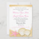 Gold and pink sparkle beach design with sea shells and starfish. Modern beach theme design with classic formal text and trendy gold and pink colour palette.