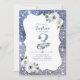 Sparkle blue glitter and floral 3rd birthday invitation