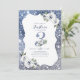 Faux sparkle silver blue glitter big three script with dusty blue and white floral, elegant and stylish, great 3rd birthday invitations for girl.
