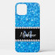 Sparkle Blue Glitter & Gems with Name and Monogram Case-Mate iPhone Case