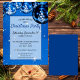Cobalt blue ornaments with silver stylised Christmas trees top your invitation for a holiday/Christmas party. The sparkly ornaments are against a starry blue sky. The text is placed on a translucent rectangle so the stars shine through, but your text is legible. Contrasting, all-caps and script fonts have been selected. All lines are in black, except for the words "Christmas Party" that are in a darker shade, matching a fhin frame. That rich, deep blue repeats on the card back.