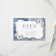 Faux sparkle silver and blue glitter frame and "RSVP" script with dusty blue and white floral, elegant and stylish. Great QR code RSVP card for modern wedding, romantic wedding, and botanical garden wedding.
