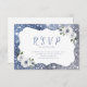 Sparkle blue silver glitter floral wedding QR code RSVP Card