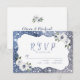 Faux sparkle silver and blue glitter frame and "RSVP" script with dusty blue and white floral, elegant and stylish. Great for modern wedding, romantic wedding, and botanical garden wedding.