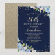 Sparkle Floral Blue 80th Birthday Party Invitation