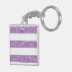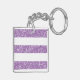 Trendy and fun Sparkle Glitter Look Stripes Acrylic Keychain. This design features a sparkly faux glitter look striped pattern in purple. Add text to this design to give it a personal touch.