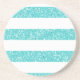 Trendy and fun Sparkle Glitter Look Stripes Coaster. This design features a sparkly faux glitter look striped pattern in turquoise. Add text to this design to give it a personal touch.
