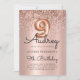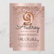 Sparkle Glitter Rose Gold Balloon 9th Birthday Invitation
