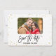 Sparkle Gold Photo Handwriting Save The Date card design. It features a space for a photo with a gradient round corners frame, faux gold stars around the edges, handwriting "save the date" script" all on a white background. On the back your photo behind a semi-transparent shape (for a faded look), which make room for text. Use Customise/Personalise tool to add your info, replace this photo. For matching ideas, please, visit my Photo Save The Date Collection.