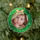Sparkle Green/Gold Bow Photo Ceramic Tree Decoration