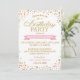 Sprinkle pink and gold glitter dots sparkle modern birthday party invitation card design.