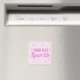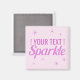 This magnet features the word "Sparkle" in pink-coloured faux glitter. There is also a scattering of pink stars on a pale pink background. The text is ready for you to customise to create your own "...Sparkle" slogan.
