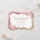 Faux rose gold sparkle glitter background and blush pink floral with "quinceanera" script in centre, elegant and stylish, great quinceanera 15th birthday party invitations.