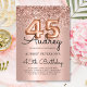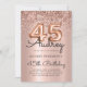 Sparkle Rose Gold Glitter Balloon 45th Birthday Invitation