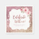 Faux sparkle rose gold glitter "celebrate with us" script with blush pink floral, elegant and stylish, great customised party napkins.